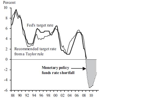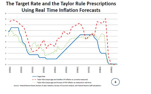 We don’t have all the fed forecasts required to recreate the Bernanke’s Taylor rule, however we do have an alternative solution – given to us by SF Fed Rudebusch in his paper The Fed’s Monetary Policy Response to the Current Crisis.