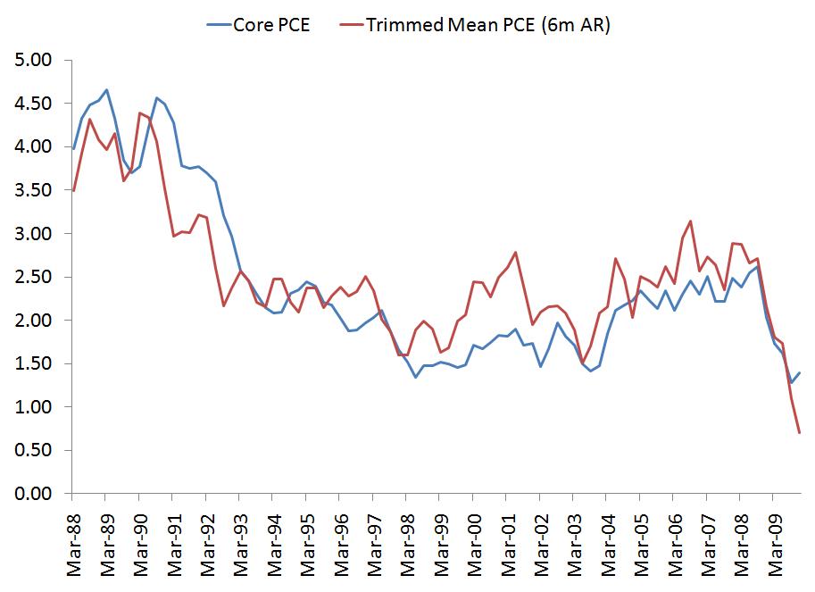The reason I feel so confident on this is that I have copied the work of SF Fed Rudebusch – therefore, I can see that the most recent Fed forecasts imply a negative funds rate across the entire forecast period (out to the end of 2012).