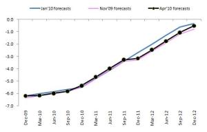 in 2010 (ending at 9.3% v. 9.6% in the Jan forecasts), but to end up still very elevated (8.3% v. 8.2% in Q4’11, and unch at 7.05% in Q4’12).