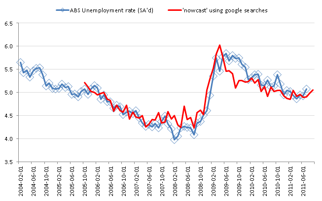 Your Google survey is a bit of fun but I doubt it bears much relationship to the ABS employment numbers, which are all over the place anyway and have a huge MoE.