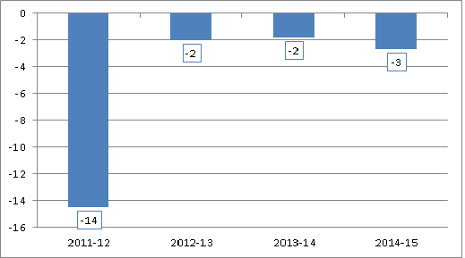 Subtracting the (oddly) higher future fund earnings estimate (~1bn), we arrive at ~21bn of extra debt across the forward estimates. The softeing is distributed: ~14bn of extra debt in 2011-12, ~2bn in both 2012-13 and 2013-14, and ~3bn in 2014-15.
