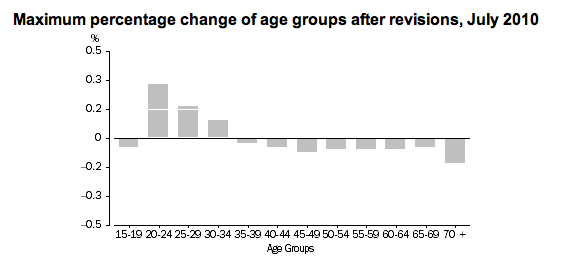 There is another source of revision, which is due to the re-weighting of the survey results, as new information alters estimates of the population’s structure. This weighting is important, as the household sample doesn’t perfectly match the population’s structure, and different groups have different degrees of labour force engagement.
