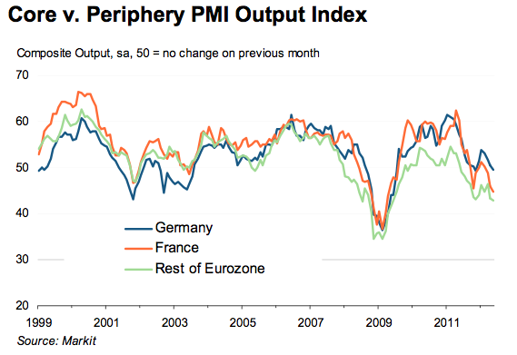 Note, this is no longer just the periphery – pretty much all of Europe, except Germany, looks very weak.