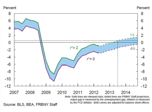 A rule of thumb that captures this is: if the optimal rate is below 1% go to zero (which in the Fed’s present case is 0-25bps). Looking at Dudley’s adjusted Taylor-99 chart, the trajectory suggests the optimal rate will not be greater than 1% until mid 2016.