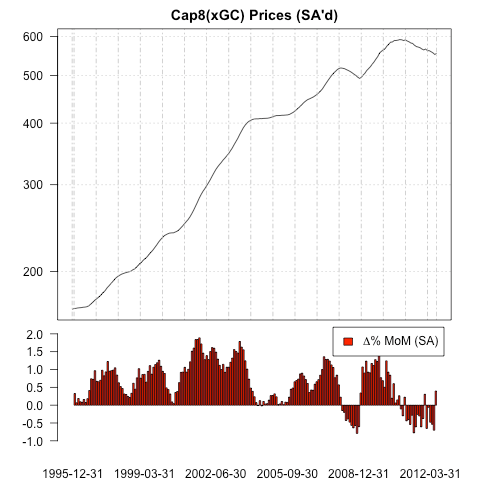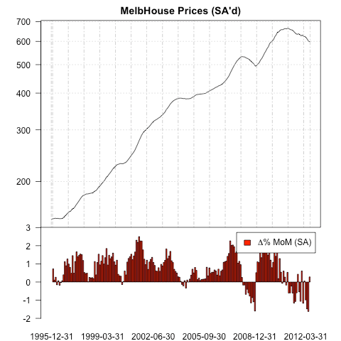 It looks to me that the seasonal dynamics have changed. June is no longer a weak month (note this is for the aggregate 8 Capital City Dwelling price series – if you SA component by component and aggregate you will almost certainly get a different result).