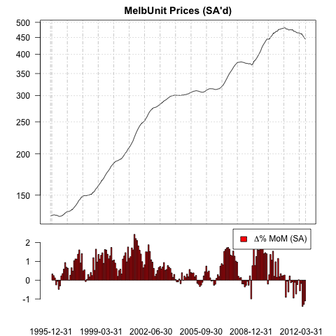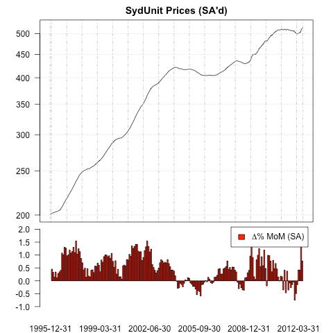 The aggregate SA’d index (note, i seasonally adjust the aggregate number, and do not sum the house and unit indices) rose by ~0.4%m/m.