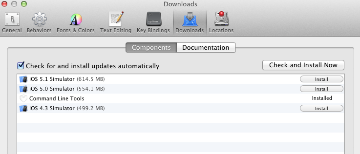 Step 6: Click on the ‘Downloads’ tab, and in the ‘Components’ section, select install for the Command Line Tools (wait again).