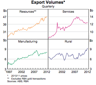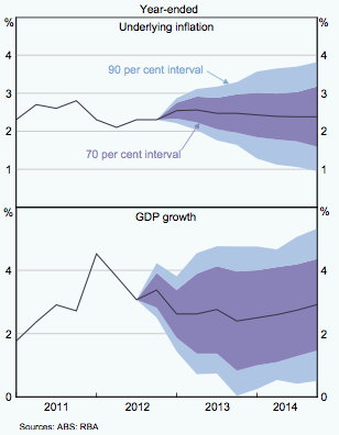 This seems to have changed in the Q1 SOMP — the RBA lowered both their growth and inflation forecasts, but they did not move their policy rate at the proximate meeting (in this case February 2013).
