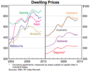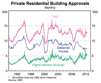 I’m not saying house prices should go up for any fundamental or technical reason. You asked me how we will get more dwelling construction going when there is considerable unsold stock and I said it would take higher (established dwelling) prices to make new construction more attractive. My point is that if the RBA wants to facilitate a smooth transition from non-mining investment to other sectors, then it will need higher house prices and the only way to get that is either through a continued exogenous boost to confidence from higher equity prices or through looser monetary policy.