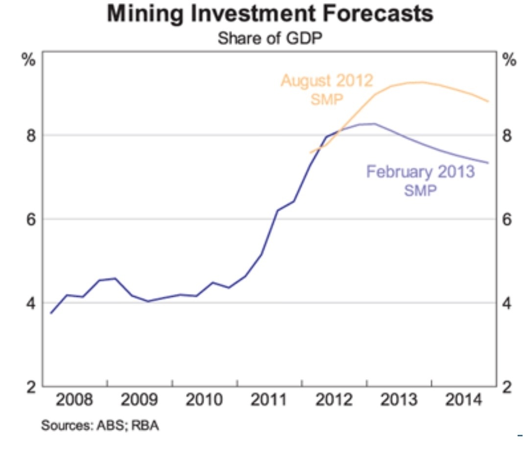 Thanks for this. With mining capex estimates for 2013-14 at $100b, it looks like the RBA forecast is fine at about 7.5% of GDP.