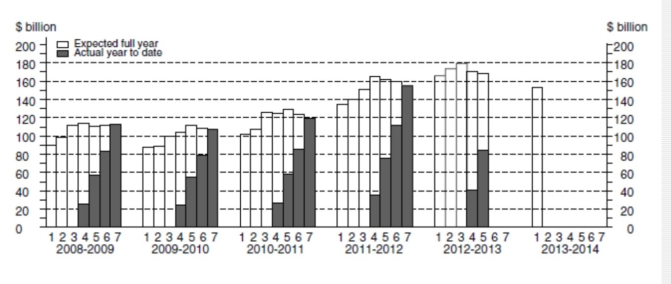 The current estimate for TOTAL CAPITAL EXPENDITURE for 2012-13 is very similar to the first estimate 2012-13 at ~168b. Actual for 6 months so far is ~$82b, which is spot on to the estimate.