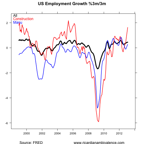 Sure, this is bad — but there is also a positive spin we might put on it. There are encouraging signs that we are starting to see some of the things associated with a normal end of a recession. Robust growth in cyclical interest rate sensitive sectors such as construction is especially encouraging.