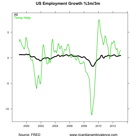 There are also signs that temporary help hiring (a typical precursor to full time employment) is starting to pick up once again.