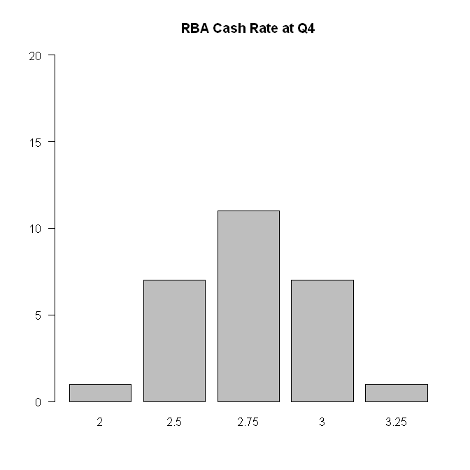 I find it hard to see how we won’t get down to 2.5% at some time in the relatively near future. And I also suspect that we are currently at the high water mark of 3% for this cycle. I would imagine that the next peak could simply involve a bit of sustained RBA jawboning of the potential for increased rates or a token 0.25% increase (from 2.5 or 2.75%) to frighten the horses. Australia is simply too indebted (particularly private debt and increasingly public debt too) to cope with any serious rate increases from here. Where the next leg down might take us is anyone’s guess – perhaps 2%.