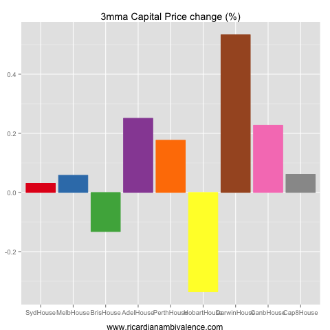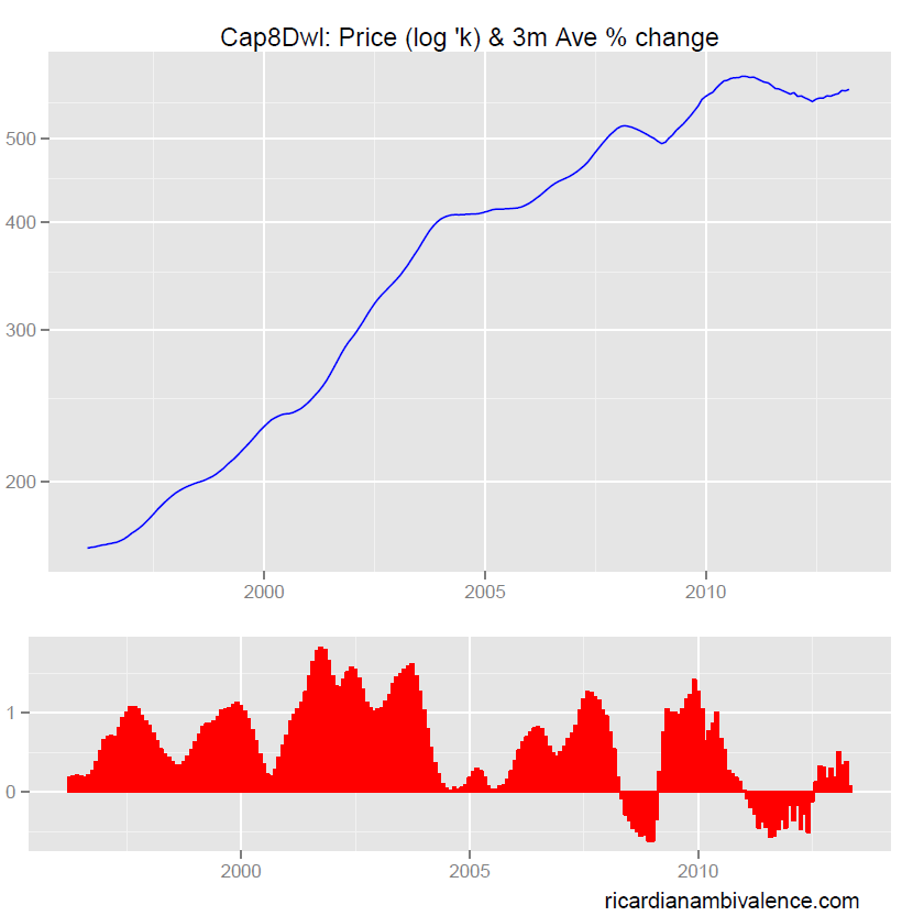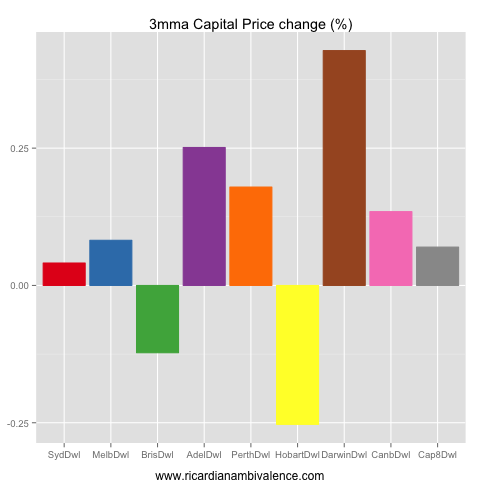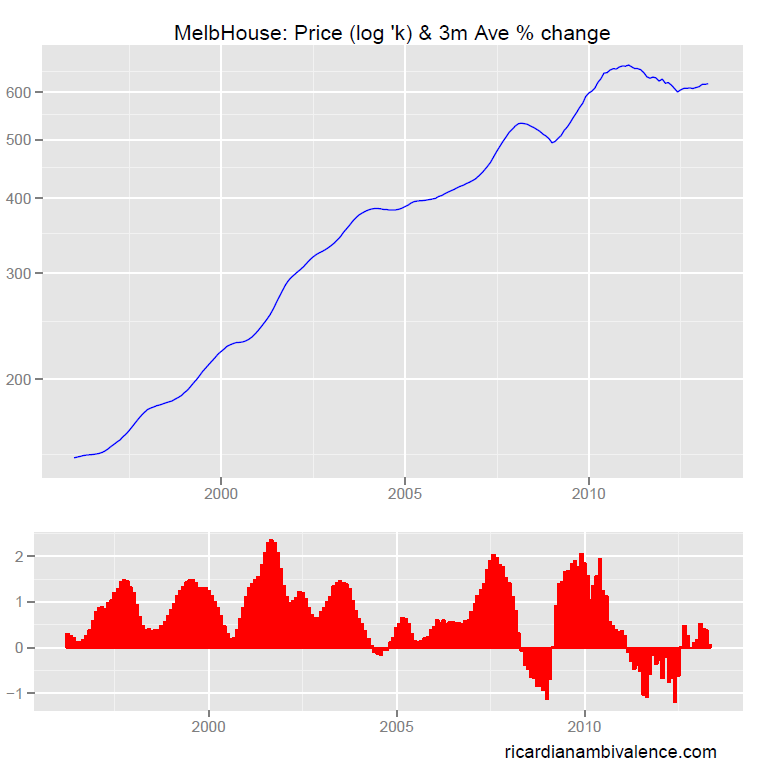 Looking through the April RPdata house price pack (note i seasonally adjusted the prices myself), i was struck by the apparent slowdown in price growth.
