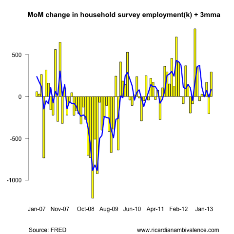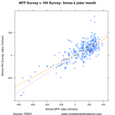 The household survey remains weaker than you’d expect given the strength of the establishment survey. It should balance out in due course (when all the revisions come in) — if you’re looking for the weakness in this data, it’s in the household survey that you’ll find it.