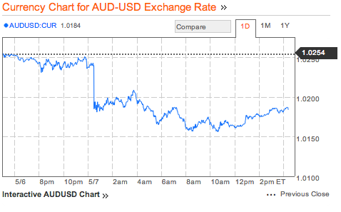 There’s a material risk of oversupply in h2 should china’s (the only partner that really counts) demand not keep up with significantly expanded supply. then prices would come down hard. then AUD would sink. While it’s not hard to imagine scenarios that would put a dent on AUD , the upside looks quite limited with S&P and risk assets ripe for a correction. Also, if you were already buying at 1.03-04 more longs would be far too risky! And what if the Fed really stop asset purchases and jobs in the US pick up while we are facing the mining slow down? Are we at AUD peak and interest rate differential will flatten?