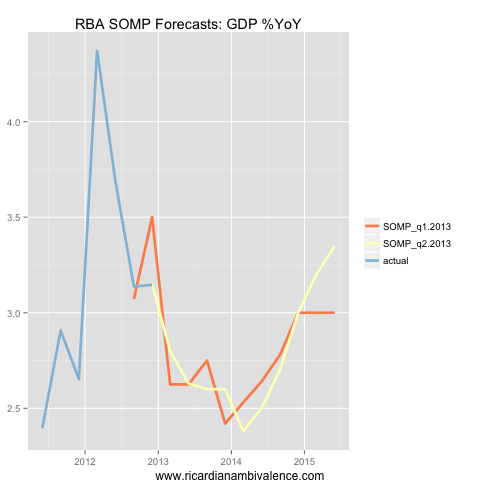 As I suspected prior to the May RBA meeting, the RBA’s demand forecasts have not been downgraded. Q4 was weaker than they expected (we already knew that) but Q1’13 appears to have been upgraded ever so slightly (+20bps to 2.8%).
