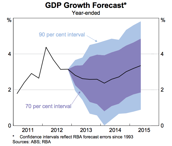 First of all, I think it’s great that the RBA has continued to publish their GDP and CPI fan charts. I think its healthy to be open about how hard this forecasting gig is, and the amount of judgement that is required to do a good job (and I think that they have done a very good job).