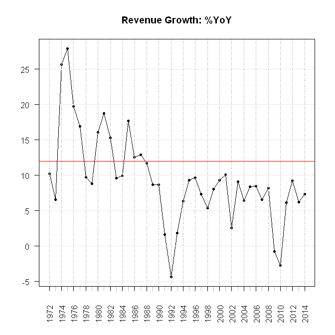 Now, it sure is true that this will be depressing revenues, but was it really realistic to expect ~12%y/y growth for 2012-13? It’s been a long time since that’s happened.