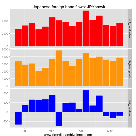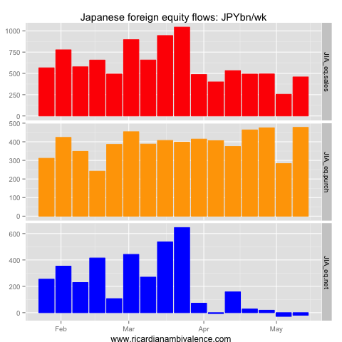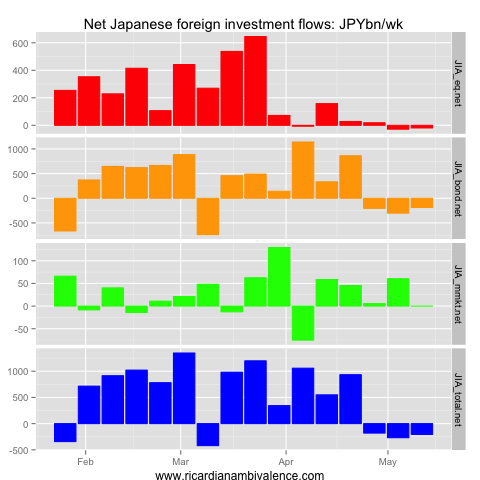 May 18, 2013 BoJ / JPY Japanese flows: w/e 11 May Posted by Ricardo Net capital outflows from Japan continued in the week to 11 May 2013. Japan continued to move capital into foreign bonds and equities. Share this: Click to email a link to a friend (Opens in new window) Email Click to share on Facebook (Opens in new window) Facebook Click to share on X (Opens in new window) X Click to print (Opens in new window) Print Click to share on LinkedIn (Opens in new window) LinkedIn Click to share on Reddit (Opens in new window) Reddit Like Loading... Related