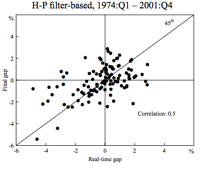 Such output gaps work okay(ish) mid-sample, but are basically useless at endpoints. This deeply flaws the most important use of the work (understanding where we are right now) — but there is hope, as this part of their work can fairly easily be improved.