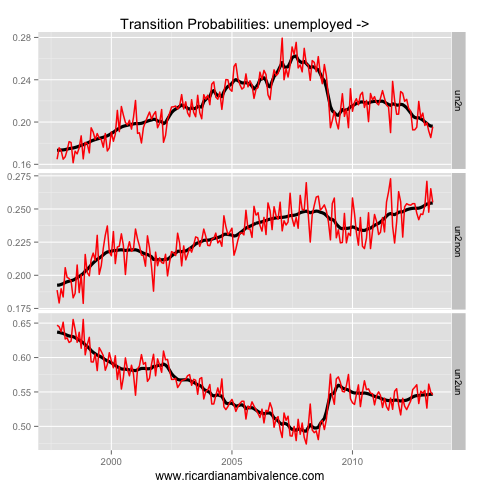 The gross flows suggest it is getting harder to move from unemployment back into employment.