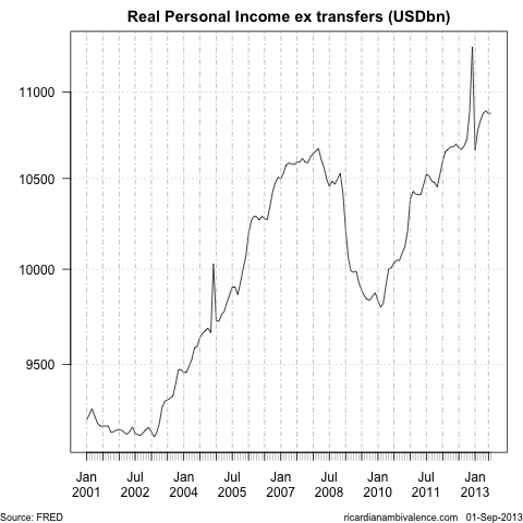 So the US situation is one of weak inflation and slow income formation — wich means inflation risks are likely to remain low. I doubt this is an environment in which monetary policy is going to be tightened very much.