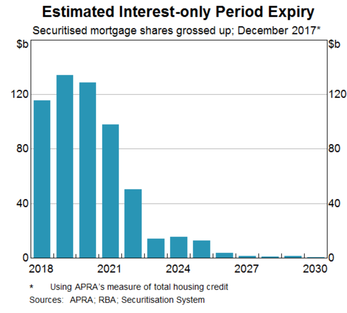 Over the five years 2018-2022 ~600bn of these mortgages mature. Given the timing of the IO mortgage boom, and the fact that most IO periods are 5yrs, I would think that most of these buyers got into expensive Sydney and Melbourne properties in the 2013-2018 boom.