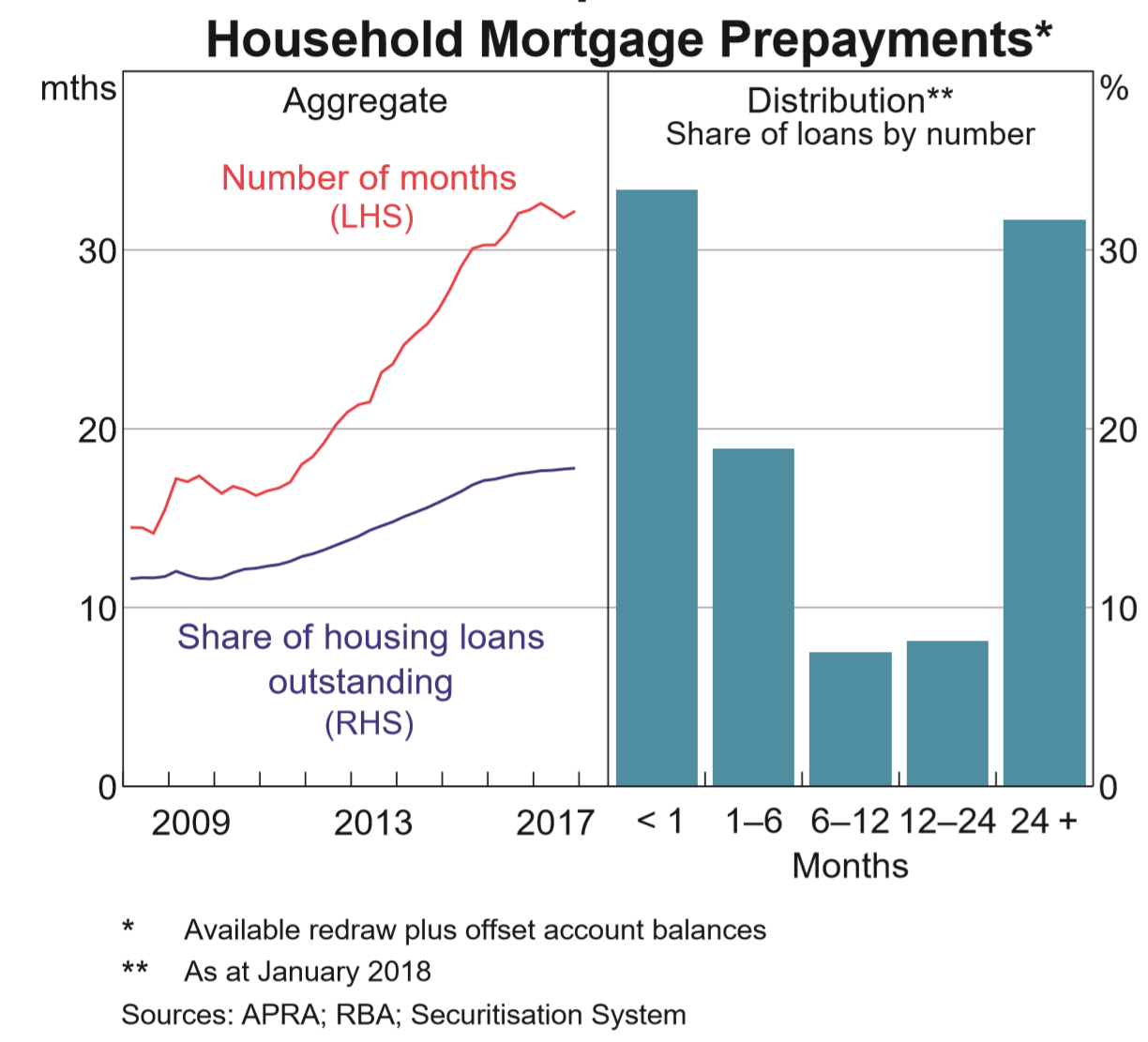 Unfortunately I don’t have the detailed data required to link how far ahead households are to the loan type — but a bit of common sense tell you that new mortgages are much less likely to have a buffer.