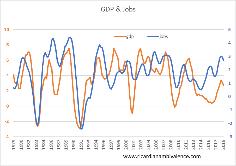 I think you’re right about the threshold for cuts. But how do you explain the 2016-18 jobs boom during a period of tepid growth?