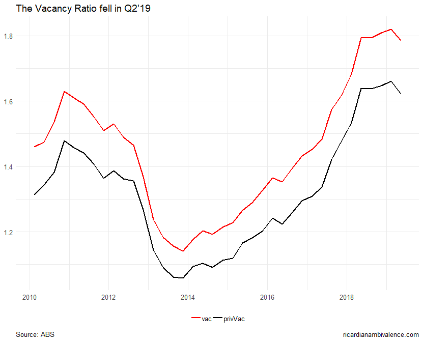 Their preferred way of looking at this data is as a ratio to the labour force: on this basis, the vacancy ratio fell a little.